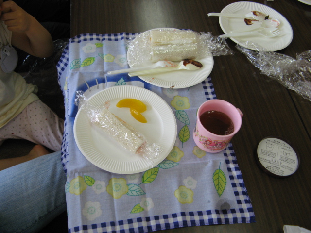 簡単おやつはロールサンドイッチ。