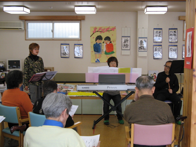 卒業写真 はみなさんにとって なじみのない曲なので一人さっさと車いす自分で動かして行ってしまわれる方がいました。でも次の曲になったら今度は車いす押してもらって大急ぎで帰ってきました。